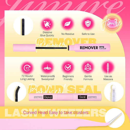 Lash Bond and Seal Waterproof Bond and Seal Lash Glue for Lash Clusters Mascara Wand Cluster Lash Glue Eyelash Bond and Seal Strong Hold for 72 Hours Avoid Stickiness (5Ml+5Ml)